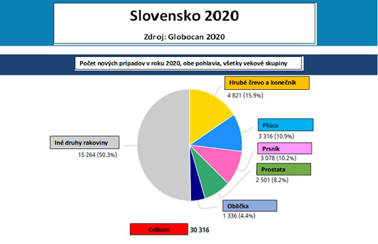 - karcinóm prsníka (približne 3000 nových prípadov ročne),