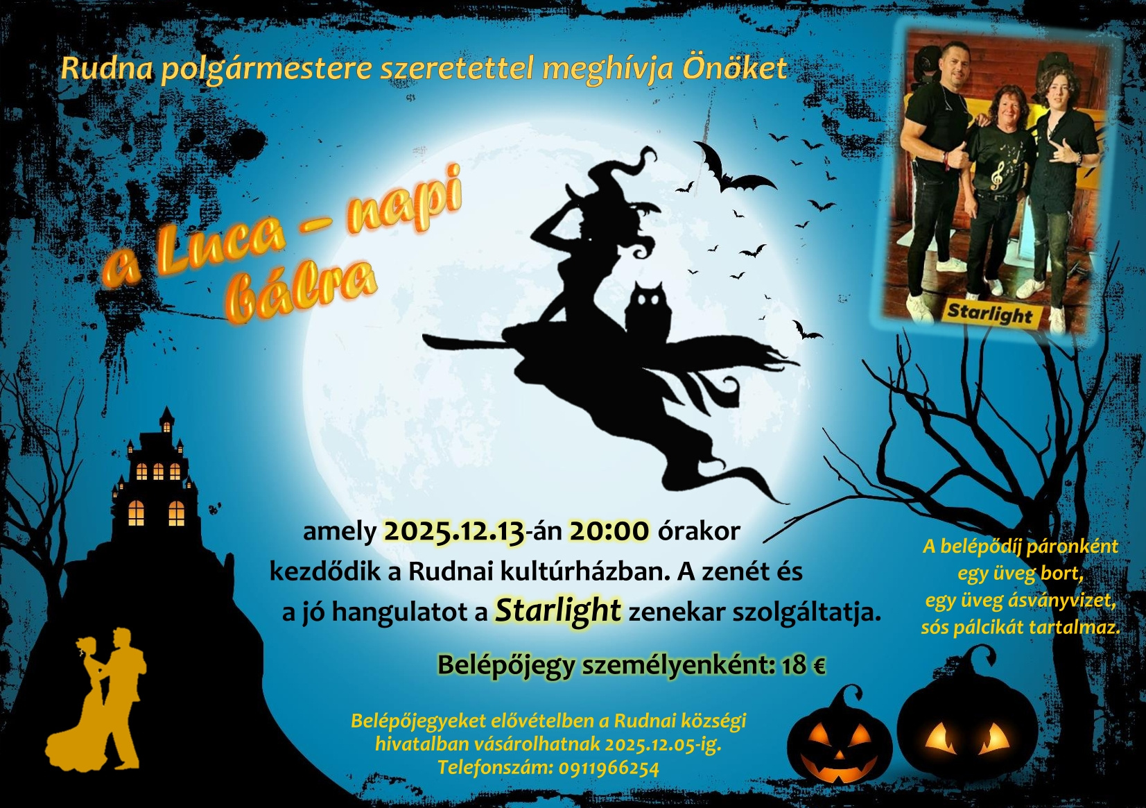 Belépőjegyeket elővételben a Rudnai községi hivatalban vásárolhatnak 2025.12.05-ig.